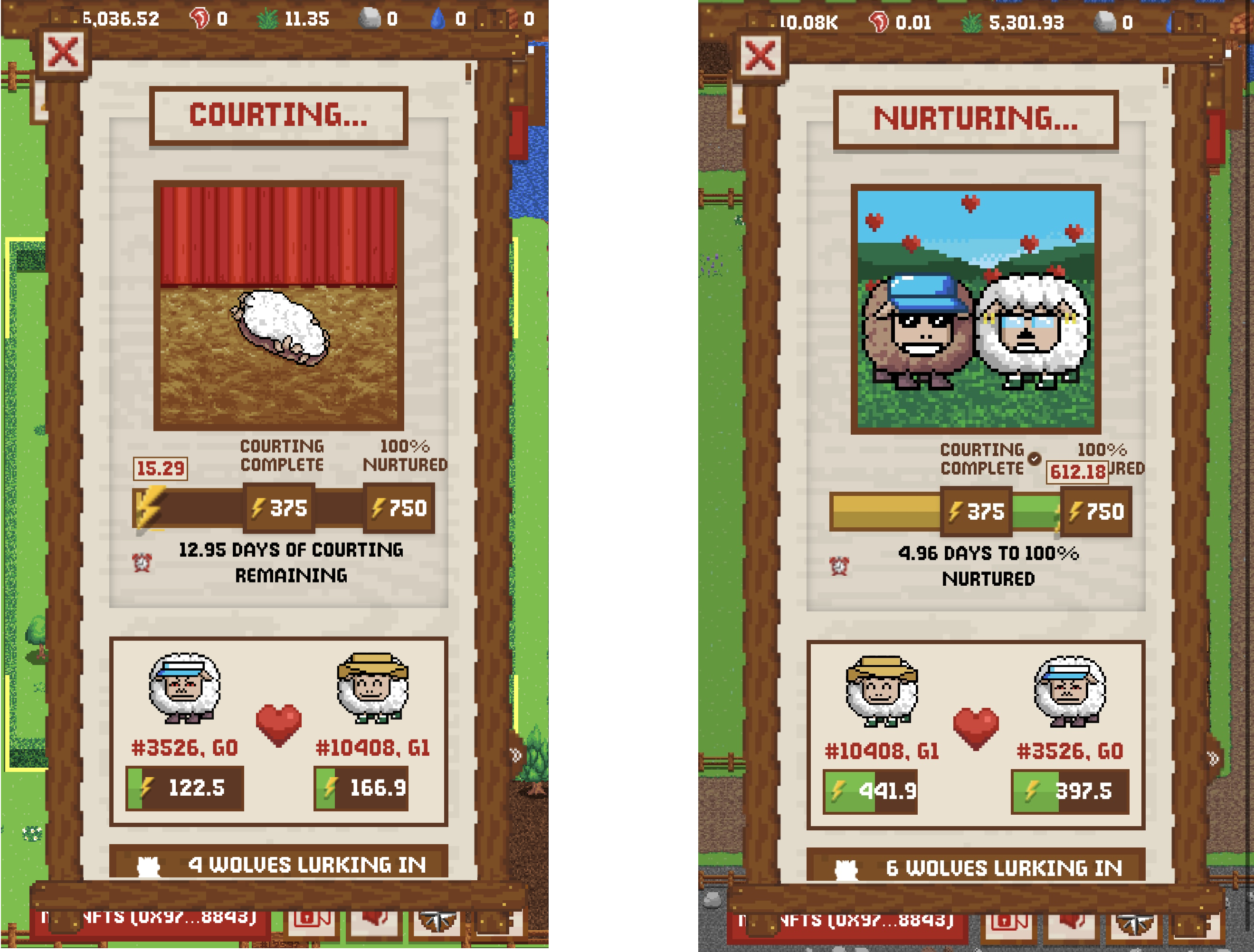 - At 50% complete (the start of the Nurturing phase) the Gen2 sheep is able to pulled from the barn and minted.
