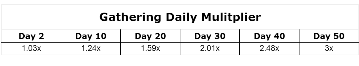 https://shepslibrary.com/sheep#gatheringGathering is all about longevity and claiming on a sunny day. If you can gather in longer sprints, your earnings increase dramatically, this is due to the gathering rate multiplier. Each consecutive day a sheep gathers, it gathers faster. Learn more about the Farmers ability to significantly extend your gathering rates and productivity here.